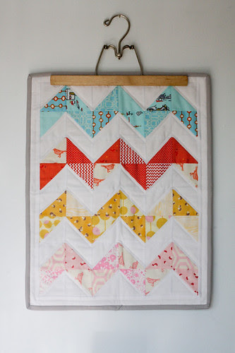 i love how you've hung your quilt. i, too, really enjoy the style and fabrics. the solid fabric looks a little on the silver/grey side, which is so cool. and what a great blue pot!