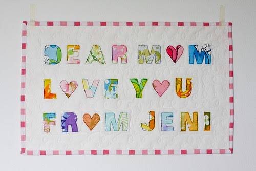 Since I graduated on Sunday, we decided to celebrate Mother's Day this weekend. I made this mini quilt for my Mom!